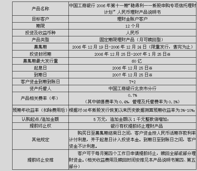 “稳得利——新股申购专项信托理财计划”产品简介
