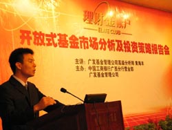 此次沙龙活动由广西分行营业部和广发基金管理公司共同主办,邀请了250位“理财金账户”客户参加,广西分行个人金融业务部蒙赞华总经理、广西分行营业部陈志彪总经理、广发基金管理公司肖雯副总裁出席了当晚的活动。本次活动的主讲人——广发基金管理公司高级分析师黄海丰先生以丰富生动的案例、精炼的语言,采用投影的形式对国内基金市场行情、基金投资技巧与策略等做了深入浅出的分析介绍。现场客户就自己在基金投资中遇到的疑问和困惑纷纷提问,专业人士现场回答,气氛相当热烈。活动中还穿插了有奖问答、现场抽奖等环节,以互动方式活跃现场气氛,让客户在获取理财知识的同时,体会到参与的乐趣。广西分行个人金融业务部蒙赞华总经理在致辞中郑重承诺,工商银行将为广大“理财金账户”客户提供更专业更完善的服务,赢得了在场客户经久不息的掌声。此次活动中,客户经理还向现场客户派发了调查问卷,现场收集客户对我行产品了解程度、使用情况以及获取信息渠道、客户潜在需求及建议等信息,为今后有针对性地开展产品营销和客户关系维护提供了参考。